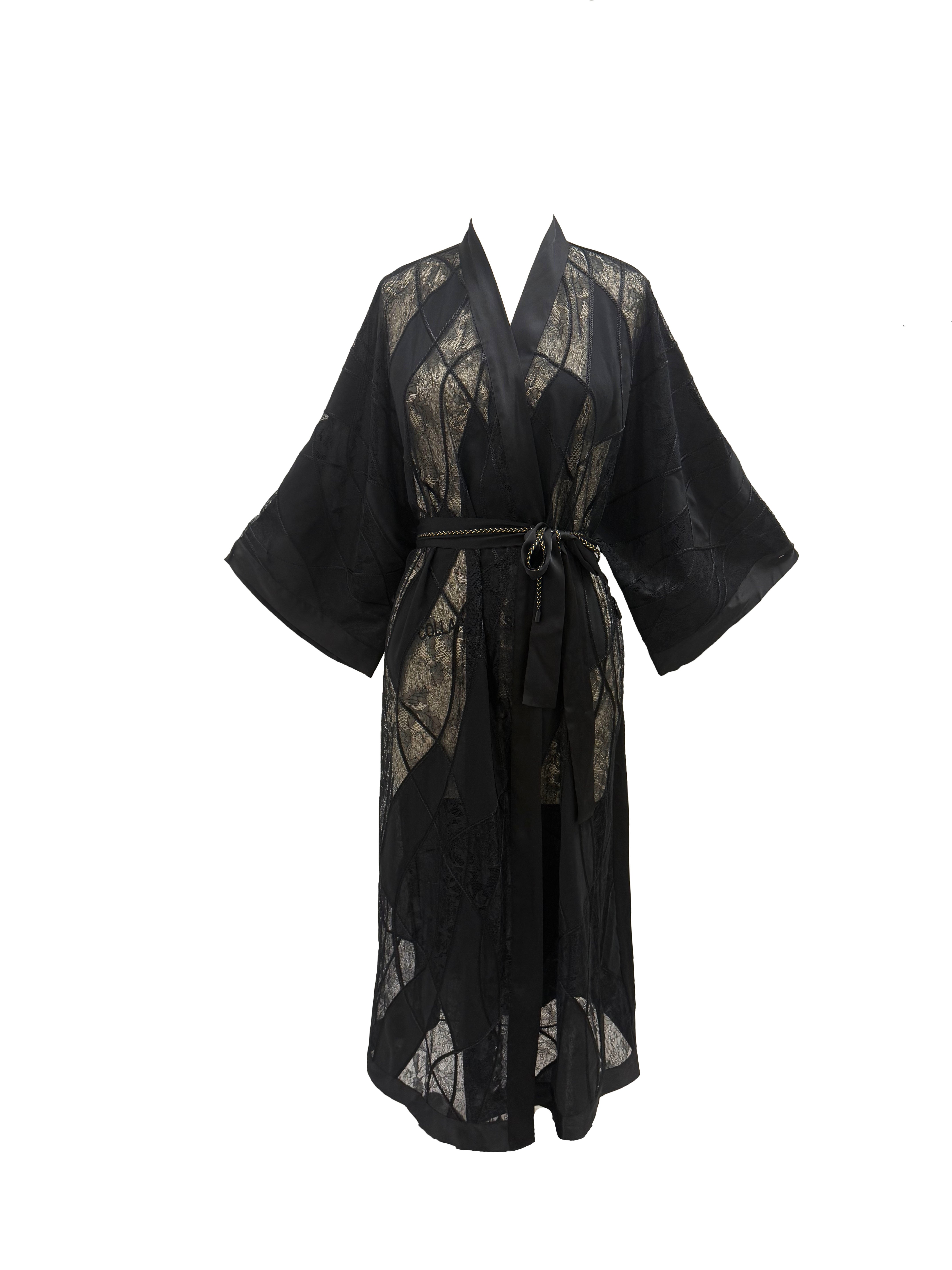 Limited Edition Long Floral Lace Robe with Silk Satin Belt